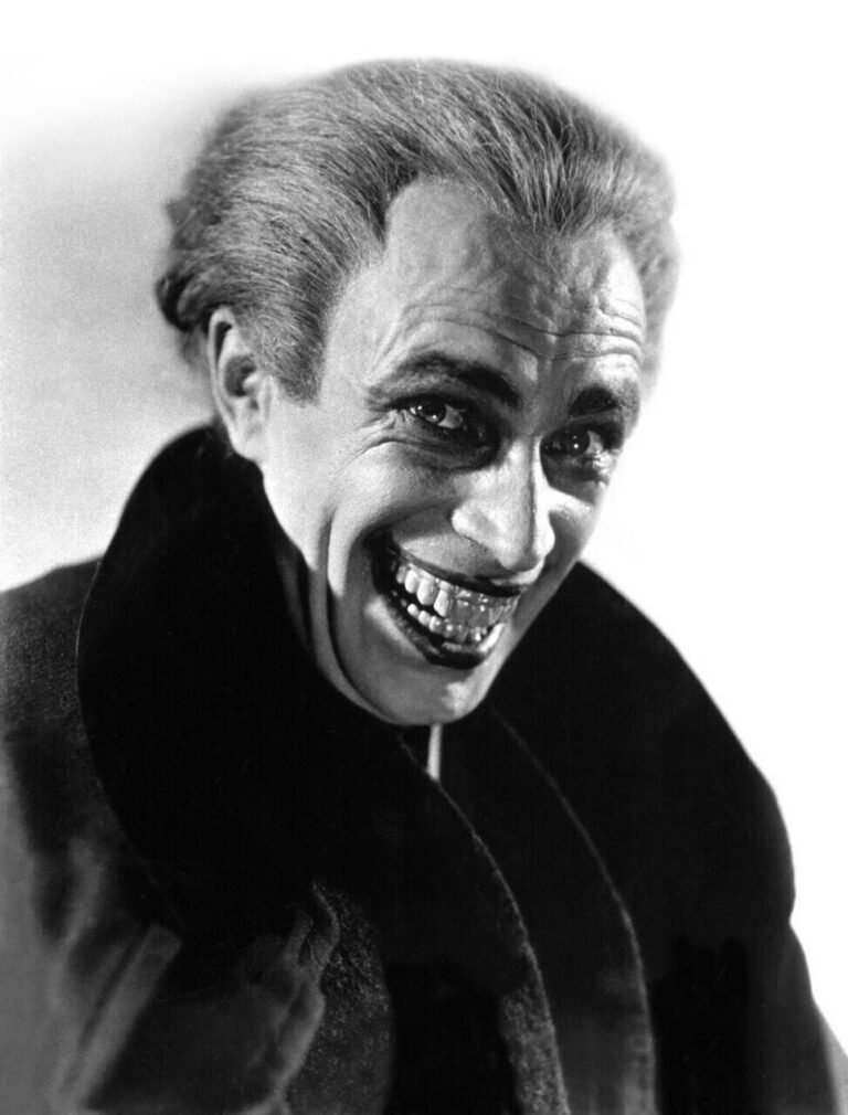 “The Man Who Laughs was originally promoted as a horror film, a precursor to the Universal Classic Monsters made famous by the studio from the 1930s to the 1950s. That classification, largely, misrepresents the film, which seeks to explore the themes of acceptance, beauty within, and man’s inhumanity to man. The Man Who Laughs has no intention of scaring its audience, but rather challenging it. So if the film itself lends nothing to the mythos of the Joker, what does? It’s the telltale deformity made from a permanent smile carved into a boy by an evil man. The gruesome look was created by make-up mad genius Jack Pierce, through the use of a dental contraption that kept Conrad Veidt’s mouth hooked at the corners. Outside of context, the visage is striking, unsettling, and, most importantly, memorable. When the DC comics team of Bob Kane, Bill Finger, and Jerry Robinson were looking to create a nemesis for their Batman, the image of Veidt from The Man Who Laughs inspired the look they were searching for, a physical characteristic at odds with his actions.” -Collider