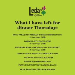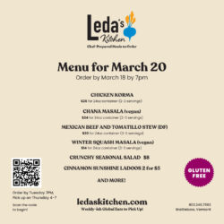 Unique offerings you won’t find anywhere else in Brattleboro. At Leda’s Kitchen, I draw on my adventures as a private chef, cookbook author, and co-owner of Dosa Kitchen Food Truck to offer weekly-ish […]
