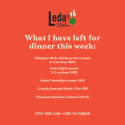 AT LEDAâS KITCHEN, I draw on my adventures as an NYC private chef, cookbook author, and co-owner of Dosa Kitchen Food Truck to offer dishes you wonât find anywhere else in Brattleboro or the surrounding areas. From the classic South Indian curries of Dosa Kitchen to Ethiopian chicken stew and kung pao tofu, each dish offers a unique culinary…