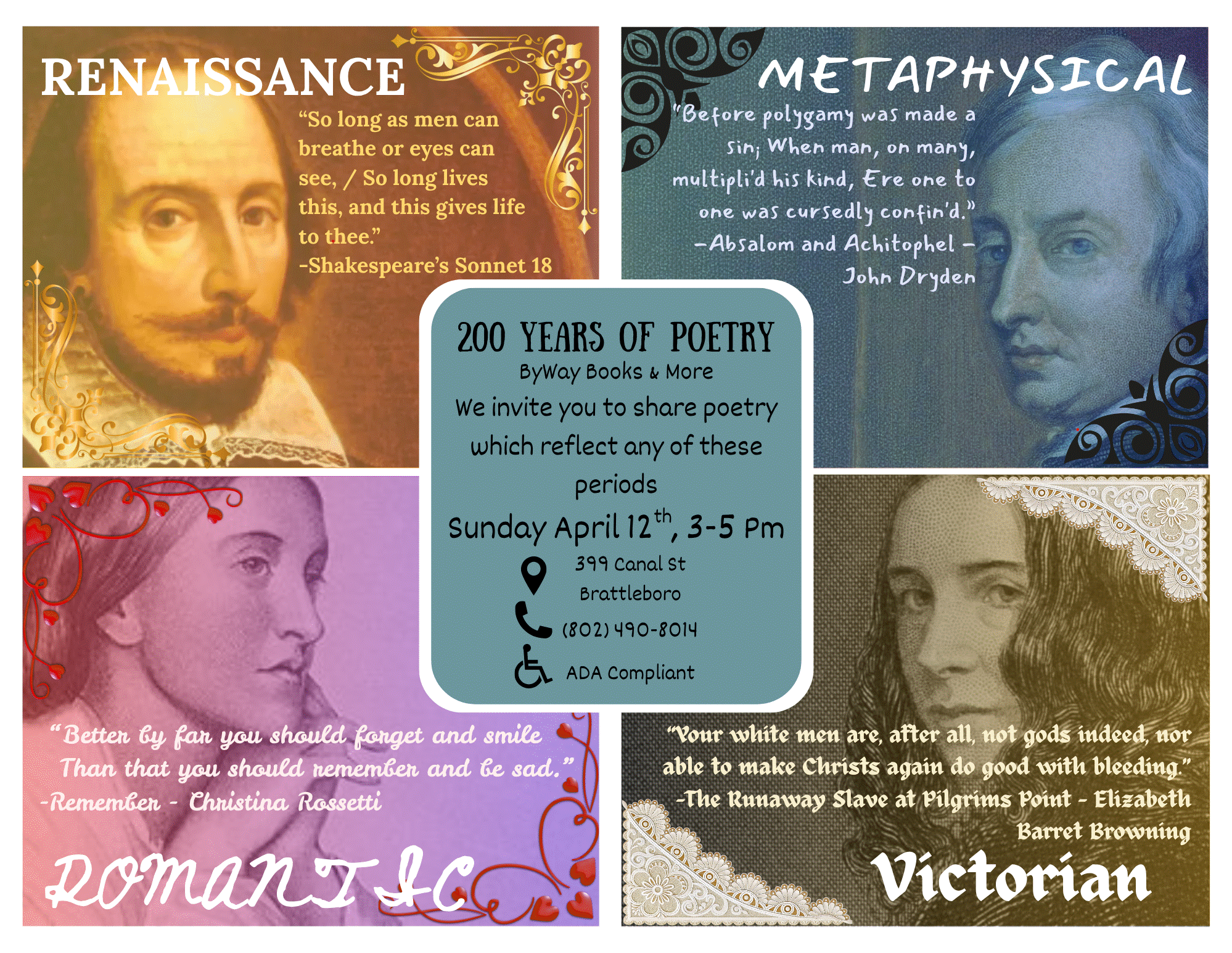 Tiny Theater and ByWay Books & More invite you to read, listen and participate- Poetry ReadingFree Community Poetry ReadingJoin us for an inspiring afternoon celebrating 200 Years of Poetry! Tiny Theater acting ensemble and open to the public to read from 200 years of poetic brilliance. Bring your…